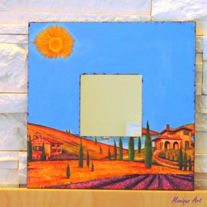 Lustro shabby chic z motywem pól lawendy, dekoracja na ścianę, prezent