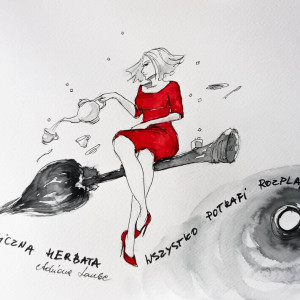 "Magiczna herbata" praca akwarelami i piórkiem artystki plastyka Adriany Laube wykonana na białym 300g papierze A3 (42cm x 30cm).