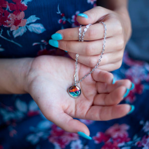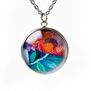 Uroczy naszyjnik z medalionem, w którym umieszczona jest autorska ilustracja. Ilustracja malowana jest w oryginale przez Kaję Gościniak, a miniatura ilustracji jest zatapiana pod szkiełkiem i oprawiona w medalion ze stali nierdzewnej, antyalergicznej. Ta metoda daje efekt tajemniczości i głębi medalionowi, kolory stają się jak żywe.