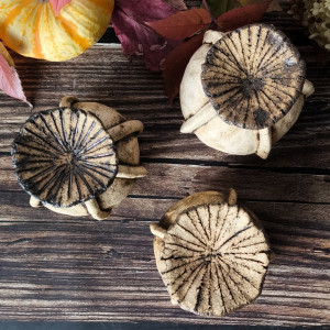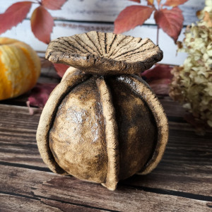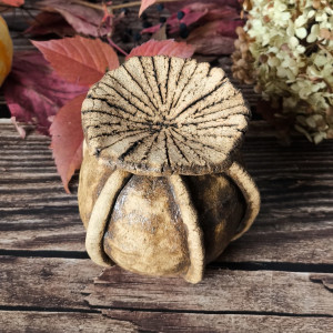 Wielkie makówki wykonane ręcznie z jasnej gliny z szamotem, przetarte ciemnym szkliwem co daje ciekawy efekt.
