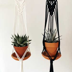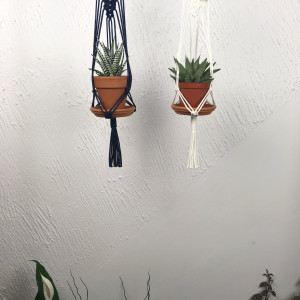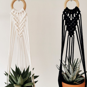 Mini kwietnik wiszacy wykonany metodą makramy, która dodaje charakteru i stylowości twojemu wnętrzu. Technika ta na nowo przezywa swój renesans w obecnych trendach dekoratorskich :) Jest tez świetnym pomysłem na wyeksponowanie Twoich roślin w domu. Taki kwietnik można zawiesić przed oknem na karniszu, na ścianie albo w narożniku pokoju, by dodać mu ciepła i klimatu. Idealny prezent dla miłośników stylu Boho, Skandynawskiego czy tez Rustykalnego.