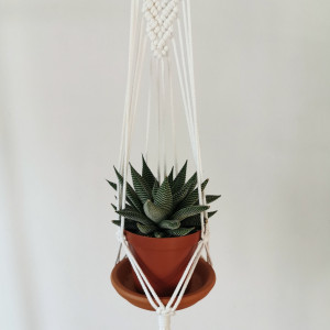 Makrama / biały Mini kwietnik wiszący / Air Plant