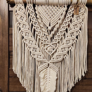 Piękna makrama w kolorze naturalnym wykonana z dbałością o każdy szczegół, idealnie wkomponuje się w każde wnętrze nadając mu niepowtarzalny klimat. Ciekawy zestaw splotów i dodatek liścia czyni ją jedyną i niepowtarzalną.