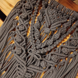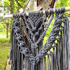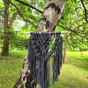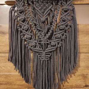 Piękna makrama w kolorze grafitowym średniej wielkości idealnie wkomponuje się w każde wnętrze nadając mu niepowtarzalny klimat.
