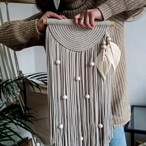 Niepowtarzalna makrama w kolorze beżowym. Wykonana ze sznurka plecionego 5 mm.