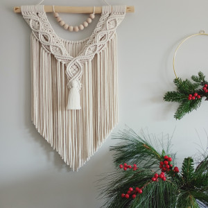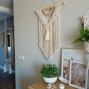 Makrama tworzona na zamówienie, dlatego może się minimalnie różnić od tej prezentowanej na zdjęciu, ponieważ jest produktem w 100% tworzonym ręcznie. Wysyłka zamówienia nastąpi w ciągu 2-5 dni roboczych.