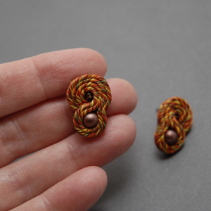 oferuję kolczyki zrobione haftem sutasz, ozdobione koralikami
