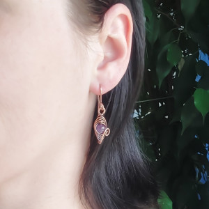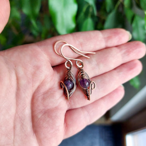 Małe miedziane kolczyki z ametystem