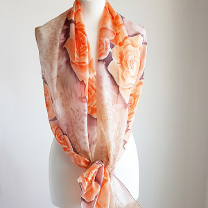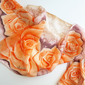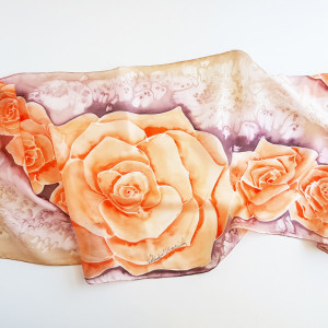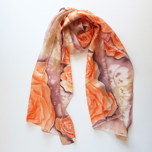 Malowany jedwabny szal - pomarańczowe róże