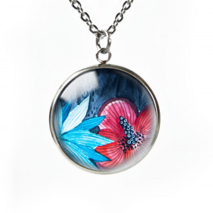 Uroczy naszyjnik z medalionem, w którym umieszczona jest autorska ilustracja. Ilustracja malowana jest w oryginale przez Kaję Gościniak, a miniatura ilustracji jest zatapiana pod szkiełkiem i oprawiona w medalion ze stali nierdzewnej, antyalergicznej. Ta metoda daje efekt tajemniczości i głębi medalionowi, kolory stają się jak żywe.