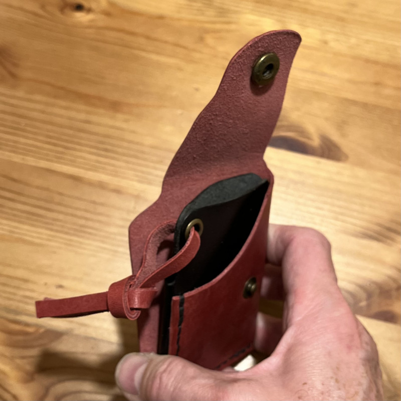 Portfel 100% wykrojony nożem i uszyty ręcznie dwoma igłami bardzo mocnym ściegiem siodłowym.