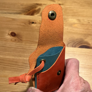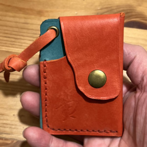 Portfel 100% wykrojony nożem i uszyty ręcznie dwoma igłami bardzo mocnym ściegiem siodłowym.