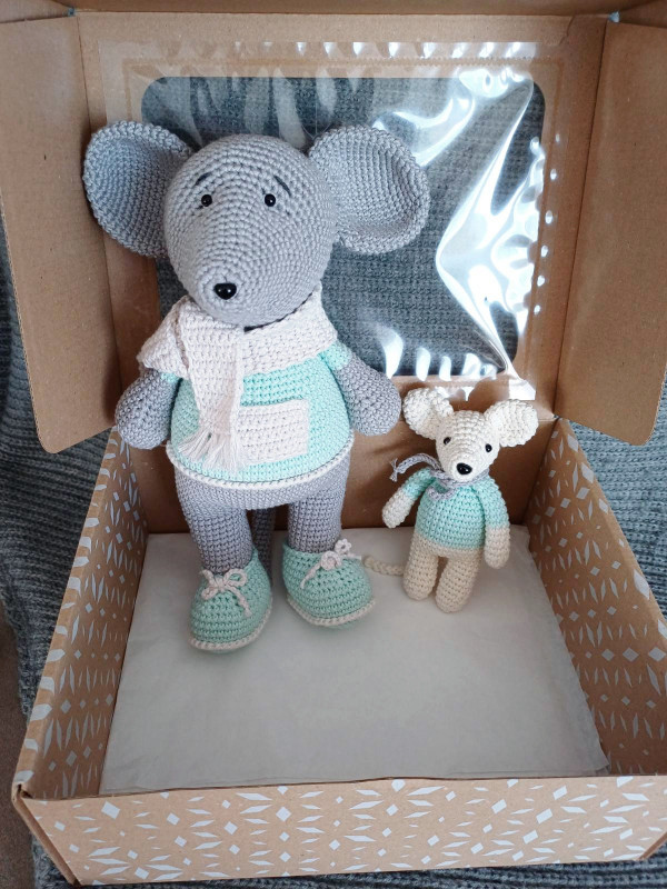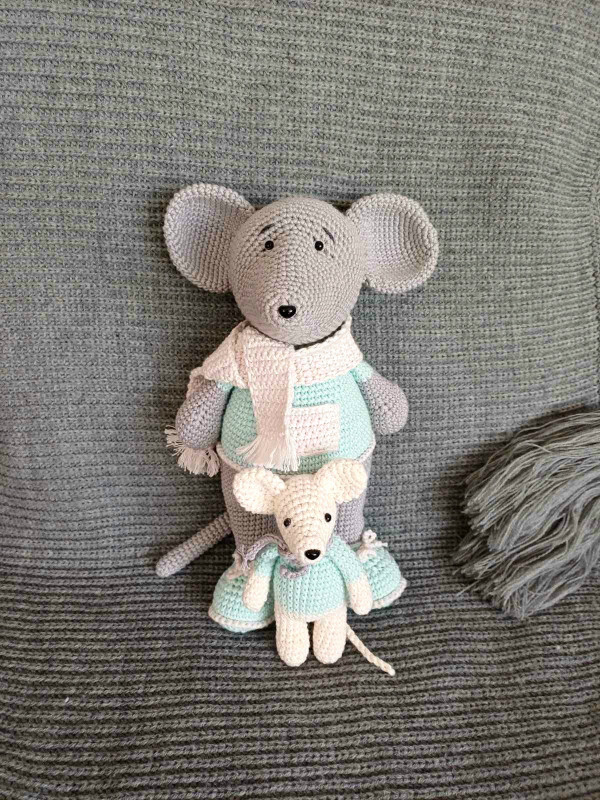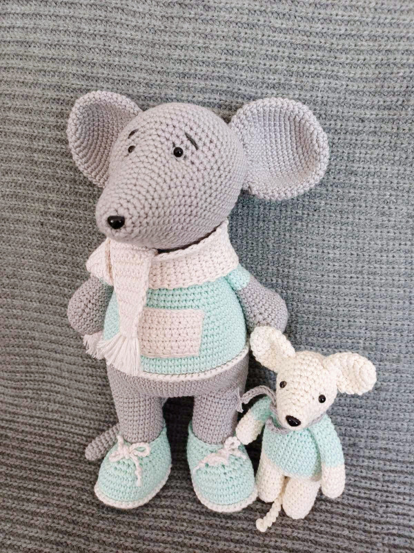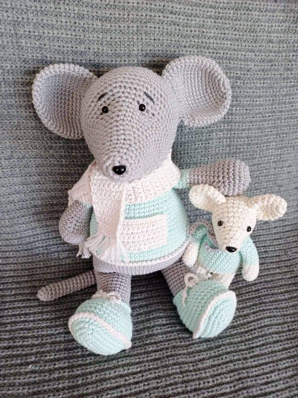 Maskotki wykonane na szydełku z włóczki bawełniano - bambusowej, bezpiecznej dla dzieci.Jedynym zdejmowalnym elementem są szaliczki.