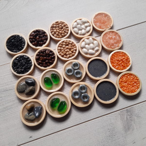 Zabawa z wykorzystaniem małych paneli z sortera dostarczy Maluchom ogrom wrażeń dotykowych i wzrokowych.