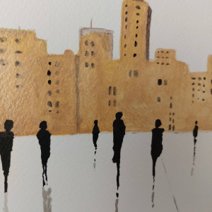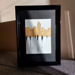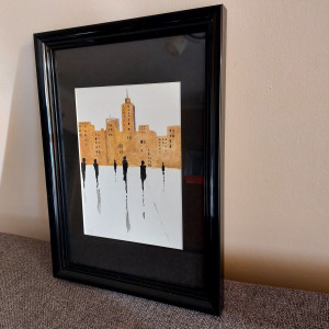 Praca wykonana akwarelą i tuszem na papierze akwarelowym 300 g/m2, format A5. Praca sprzedawana w prezentowanej ramie 42/32 cm, wymiar passe-partout 4,5 cm. Zapraszam :)