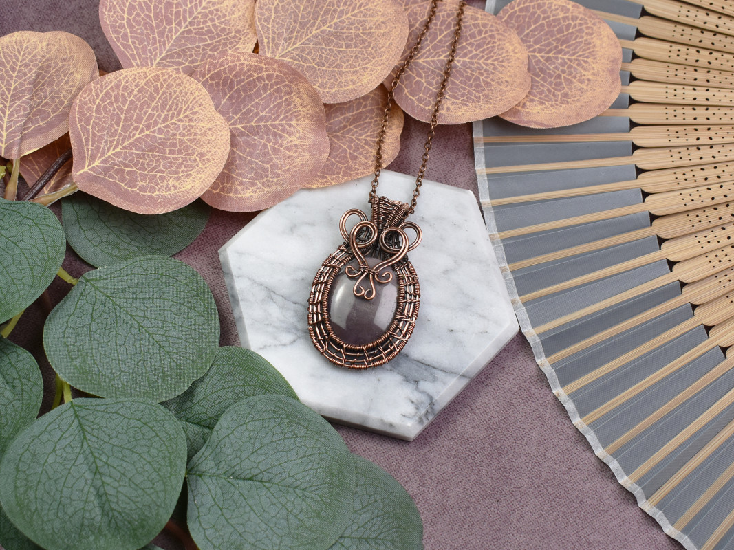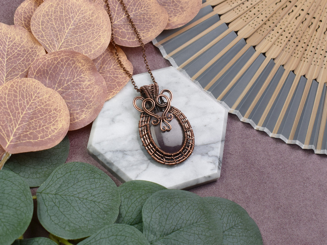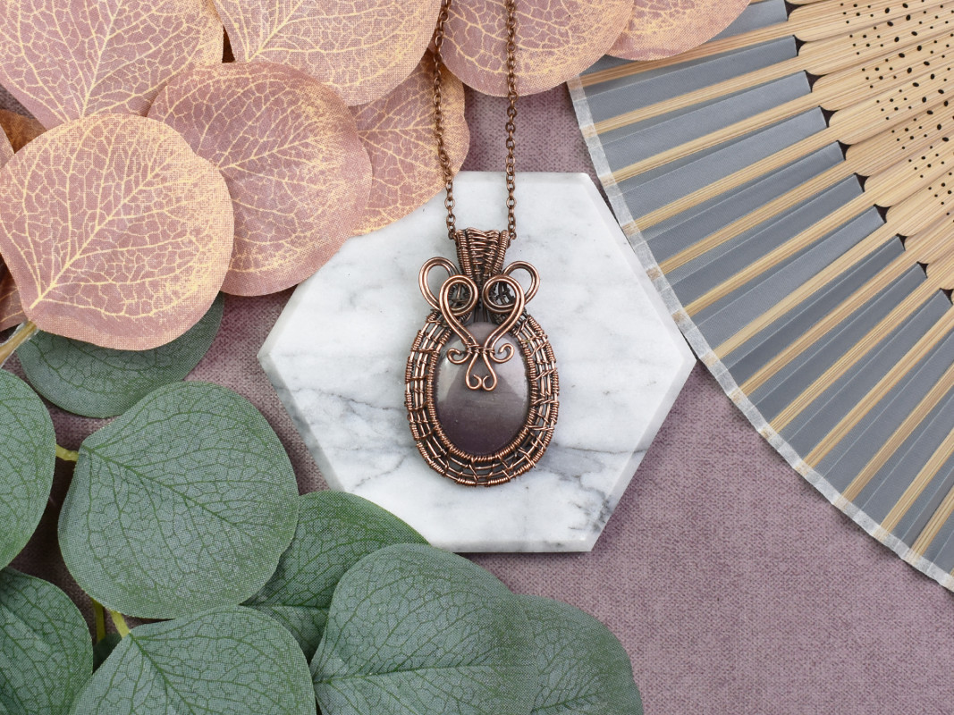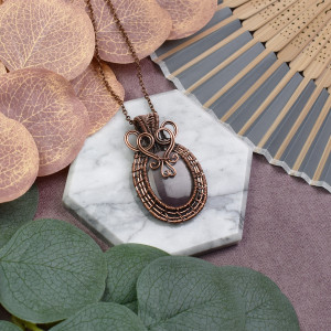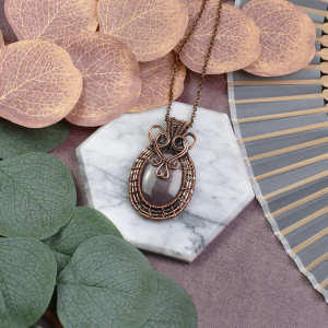 Miedziany wisiorek wire wrapping z mookaitem #540