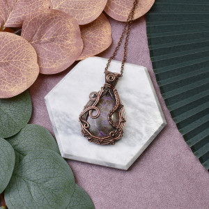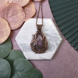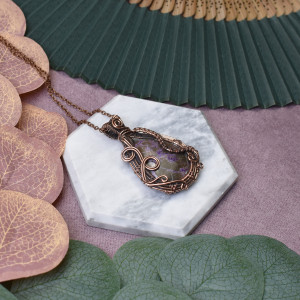Miedziany wisiorek wire wrapping z purpurytem #465