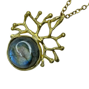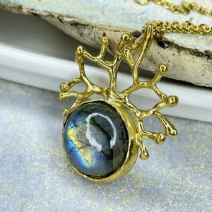 Odkryj magię nocy z naszyjnikiem z kolekcji „Korona Nocy”. Iryzujący labradoryt w połączeniu z eleganckim mosiądzem tworzy niezwykłą biżuterię o zachwycającej grze kolorów. Ręczne wykonanie podkreśla wyjątkowość kamienia, a naszyjnik będzie ci towarzyszył przez długi czas ze względu na staranne wykonanie. Doskonały zarówno na co dzień, jak i na wyjątkowe chwile, wnosi subtelny akcent magii i siły do każdej stylizacji.