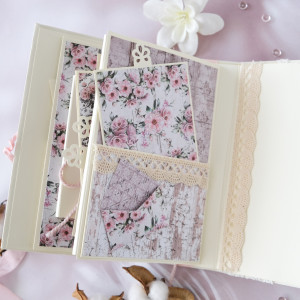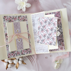 Mini albumik pomieści 20 zdjęć formatu 7,5 na 10 cm. Taki format możemy z łatwością uzyskać w dowolnej aplikacji do kolażu zdjęć a następnie wywołać dwie sztuki na papierze formatu 10 na 15 cm. Albumik świetnie sprawdzi się jako prezent z okazji ślubu, rocznicy ślubu lub urodzin.