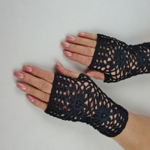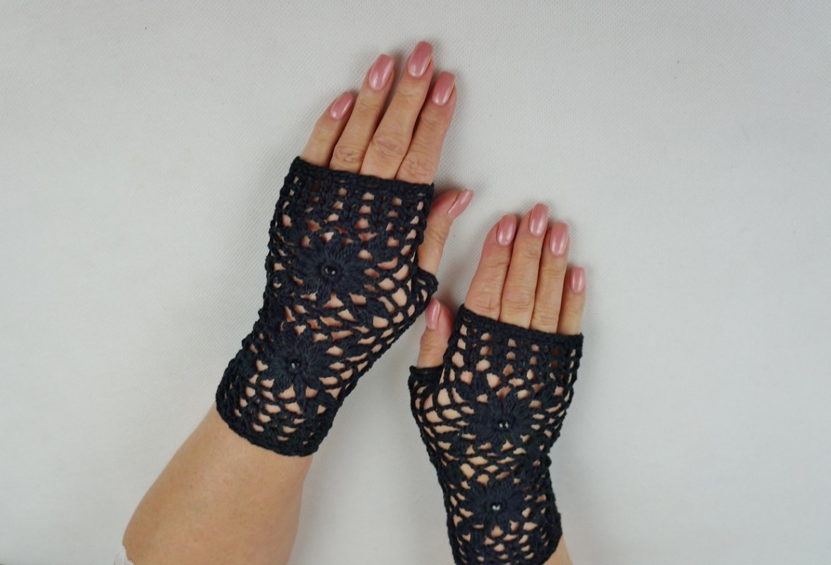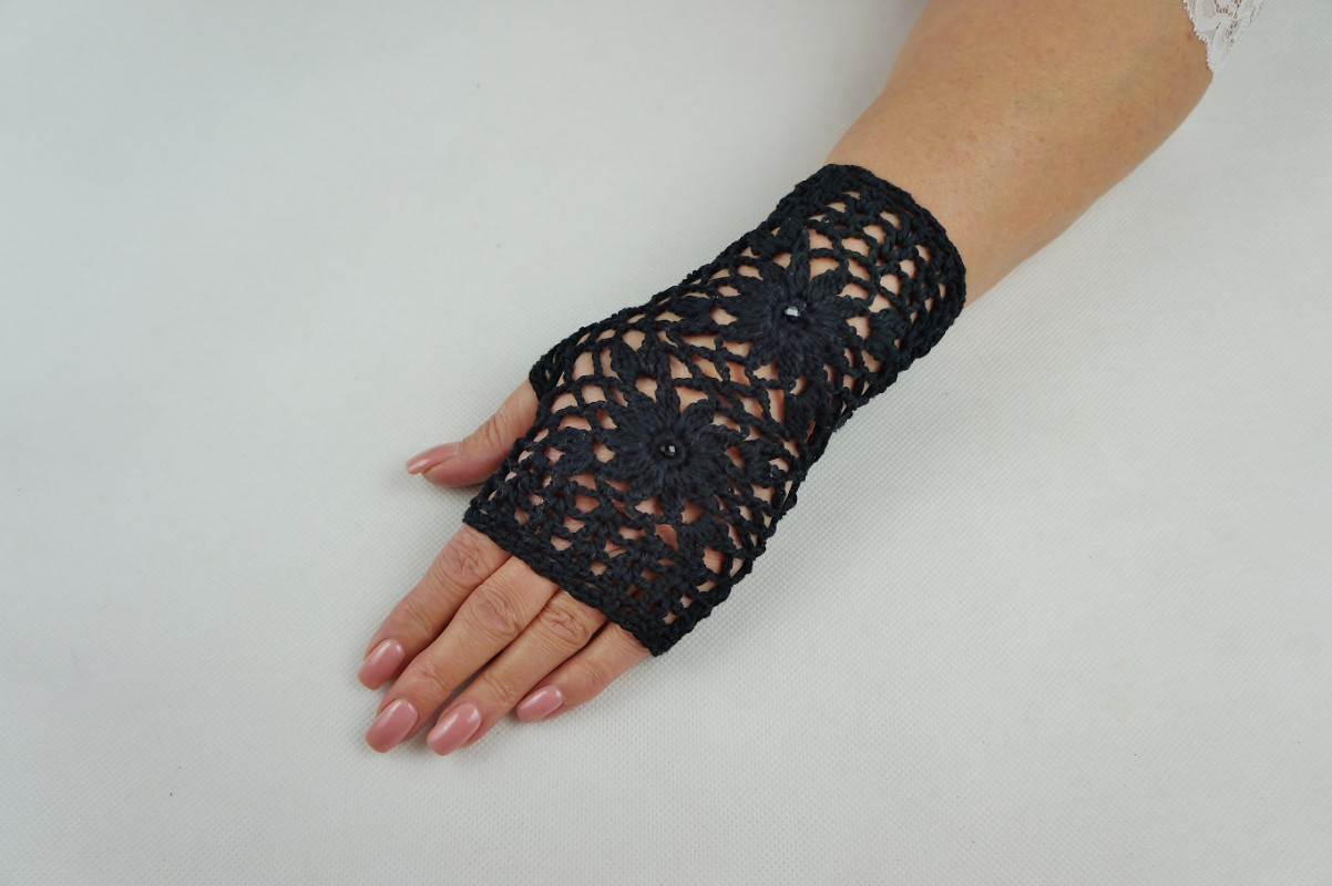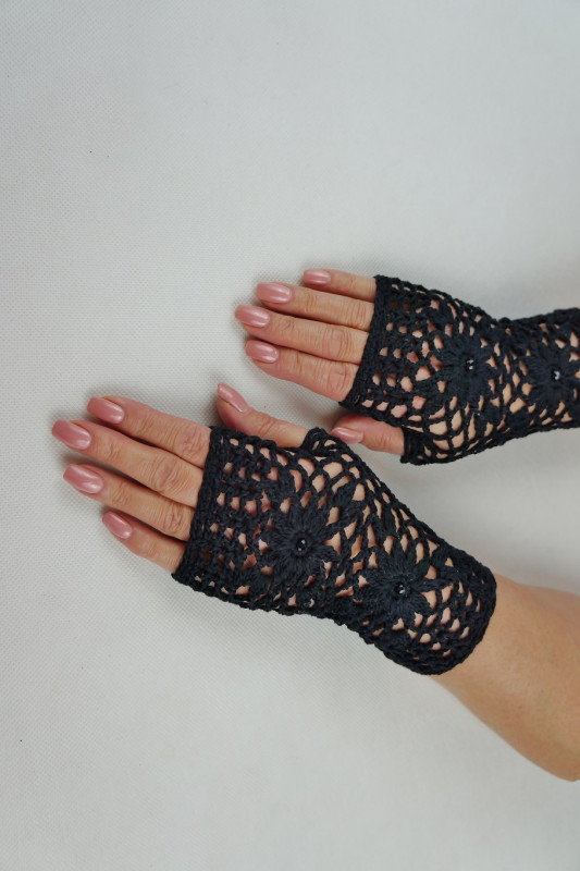 Mitenki wykonano ręcznie szydełkiem z bawełny - 100 %. WYMIARY; dł.- 21 cm, obwód - 16 cm.