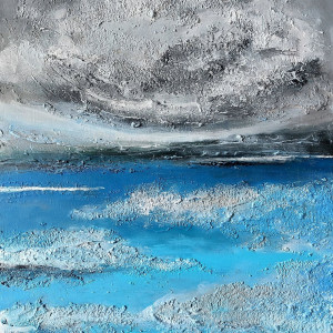 Praca Morze to obraz namalowany farbami akrylowymi na podobraziu o wielkości 50/40 cm.