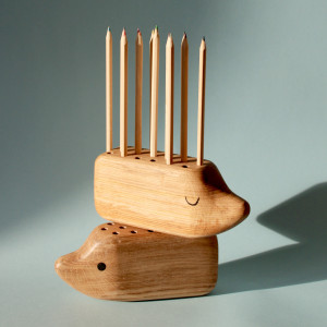 Mrugajacy Jeż - drewniany przybornik na biurko