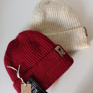 Czapka typu hipster beanie, dziergana ze 100% czystej wełny.