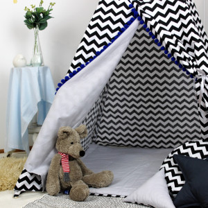 Namiot Tipi zainspirowany jest zabawą, kreatywnością i beztroską dzieci. Idealnie pasuje do pokoju dziecięcego, salonu czy ogrodu. Może zapewnić najmłodszym świetną kryjówkę do zabawy w domu oraz ochronić przed promieniami słońca, gdy namiot jest ustawiony na świeżym powietrzu.