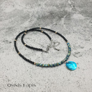 Naszyjnik etniczny z muszlą- onyks i hematyt