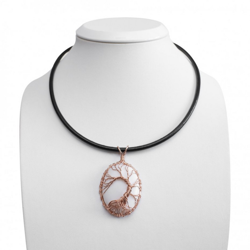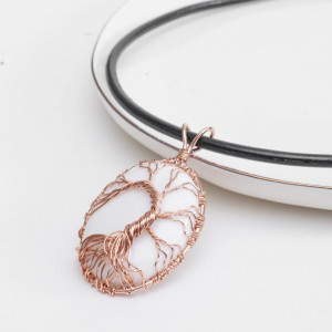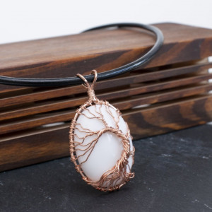 To okazały i efektowny wisiorek, który zwraca uwagę. Duży kamień Jadeitu służy jako baza, na której ręcznie wykonane zostało drzewko z mosiężnego drutu. Mosiądz naturalnie pięknie patynuje, dodając biżuterii unikatowego, postarzanego charakteru. Ze względu na naturalny charakter kamienia, każdy naszyjnik jest unikatowy.
