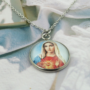 Wisiorek z łańcuszkiemn, naszyjnik duchowy, religijny - Matka Boska.