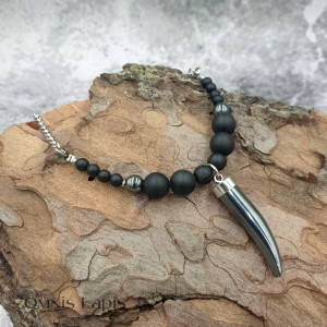 Naszyjnik z grotem - hematyt, onyks, turmalin