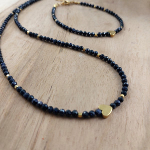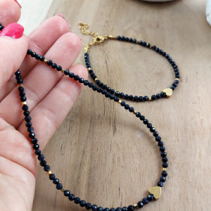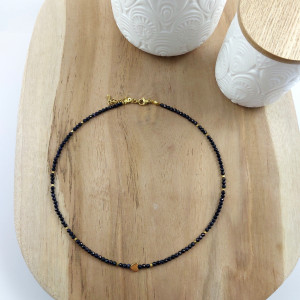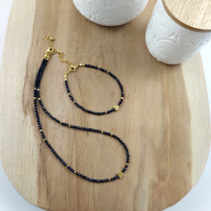 Naszyjnik jest wykonany z kamieni półszlachetnych (Noc Kairu), przekładki są z hematytów natomiast elemanty metalowe to stal chirurgiczna.