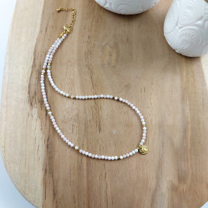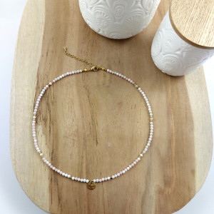 Naszyjnik jest w kolorze biało-różowym, różowy jest bardzo jasny.