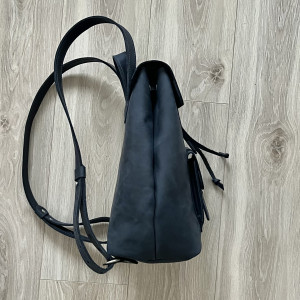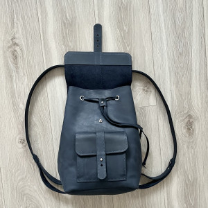 Plecak zamykamy rzemieniem skórzanym oraz klapą zapinaną na knopik.