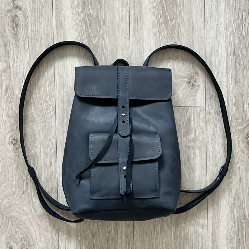 Niebieski plecak posłuży swojemu właścicielowi przez wiele lat. Wykonany jest z grubej i mocnej skóry bydlęcej. Do uszycia plecaka zastosowano bardzo mocne nici a elementy nośne narażone na przeciążenia wzmocnione zostały dodatkowo nitami.