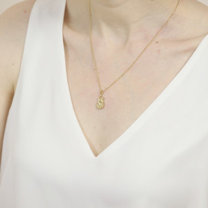 Dyskretny wisiorek wykonany ze srebra 925 pokrytego grubą warstwą 24 karatowego złota, zawieszony na łańcuszku z regulacją.