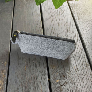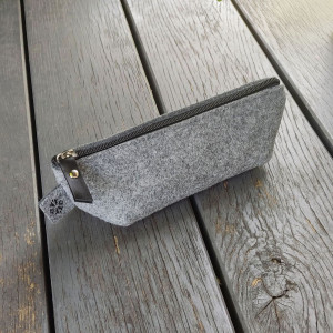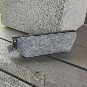 Niski, pojemny, praktyczny i prosty piórnik z filcu poliestrowego 100%. Filc grubości 4mm. Pomieści niezbędne akcesoria szkolne jak i może służyć jako mała kosmetyczka. Przydatny również jako pojemnik w torbie na różnego rodzaju drobiazgi. Zamykany jest czarnym zamkiem, srebrny suwak ozdobiony czarną skórą naturalną. W bok wszyte nasze logo. Piórnik został wycięty laserowo, ma bardzo równe boki i nie będzie się strzępić. Taki piórnik będzie bardzo miłym prezentem oraz unikatowym dodatkiem. Jeśli lubisz się wyróżnić w pracy zabierz go ze sobą.