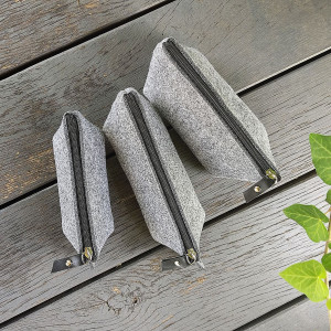 Na zdjęciu w komplecie z innymi to ten środkowy piórnik filcowy