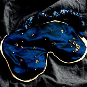 Opaska na Oczy NOC - należy do powstającej serii JEDWABNYCH poduszek i opasek na oczy, wyszywanych MINERAŁAMI.