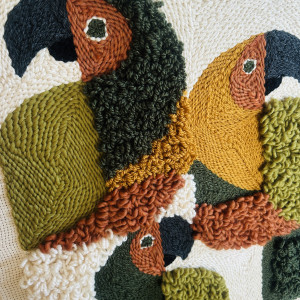 Każda praca powstaje od podstaw w mojej pracowni — od autorskiego rysunku wzoru, przez dobór kolorów, aż po ręczne tkanie i wykończenie.