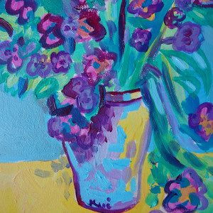 obraz ręcznie malowany fowizm kwiaty w wazonie