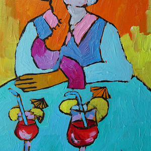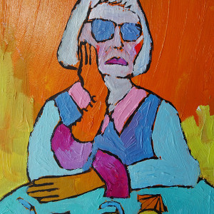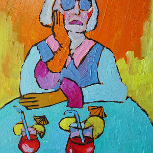obraz ręcznie malowany portret diva babcia z drinkiem