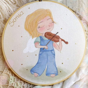 obrazek anioł grający na skrzypcach pamiątka chrzt