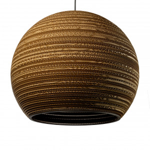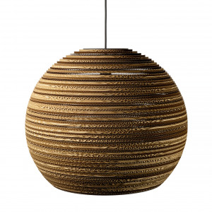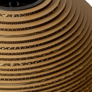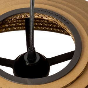 Ekologiczna lampa wykonana z tektury falistej i sklejki brzozowej. Lampa wycięta laserem, sklejana ręcznie klejem nie emitującym szkodliwych substancji oraz zaimpregnowana lakierem akrylowym. Fragmenty lampy wykończone ringami ze sklejki liściastej dodającymi elegancji i zabezpieczającymi przed uszkodzeniami. Lampa wyposażona w kabel z oplotem o długości 1,2 m, czarną rozetkę maskującą i czarną oprawkę przystosowaną do żarówek energooszczędnych E27. Ze względu na ręczne wykonanie każda lampa to produkt unikatowy i może się nieco różnić od egzemplarza przedstawionego na zdjęciach.