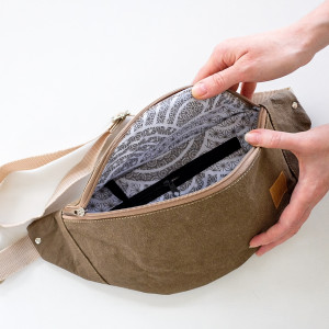 Nerka uszyta z washpapy, w środku wykończona bawełnianą podszewkę z dodatkowa kieszonką i smycz na klucze. Nerka posiada mocny regulowany pasek zapinany na karabinek.