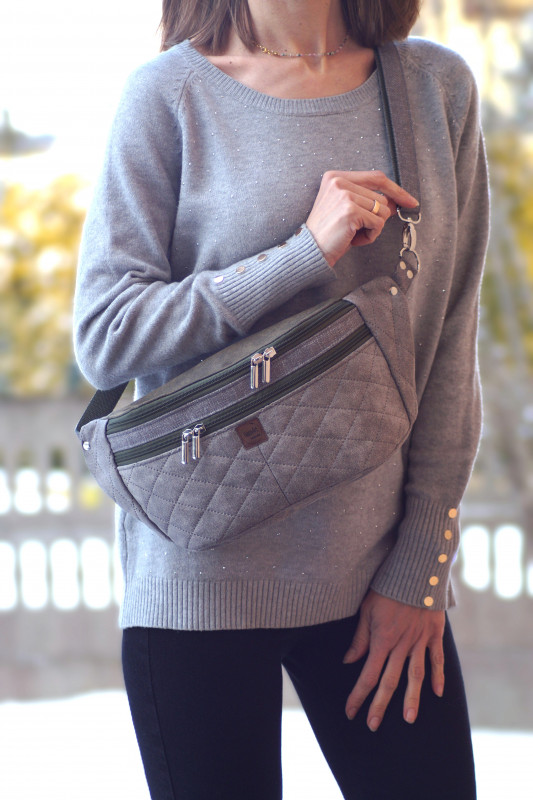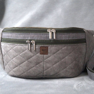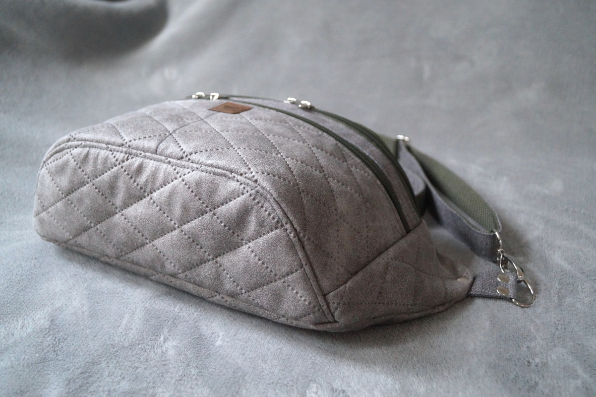Pasek wykonany z taśmy nośnej, z jednej strony obszyty tkaniną tapicerską.