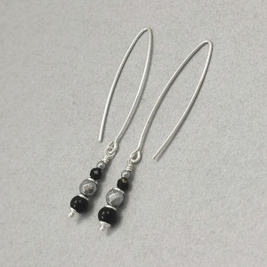 Onyks, agat, hematyt, srebro 925 - długie kolczyki