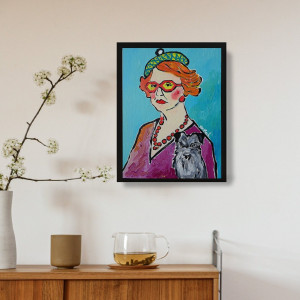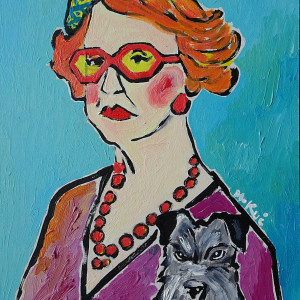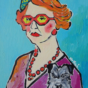 oryginalny obraz olejny babcia ze sznaucerem