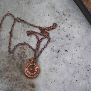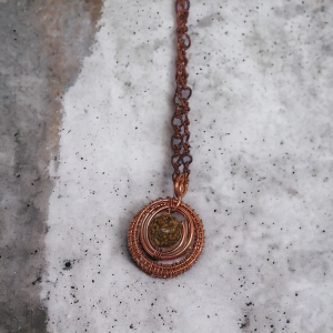 Oryginalny wisiorek z miedzi na łańcuszku z jaspisem